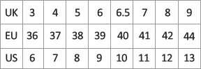 Available in full sizes, go down to the nearest whole size if you take a half size.